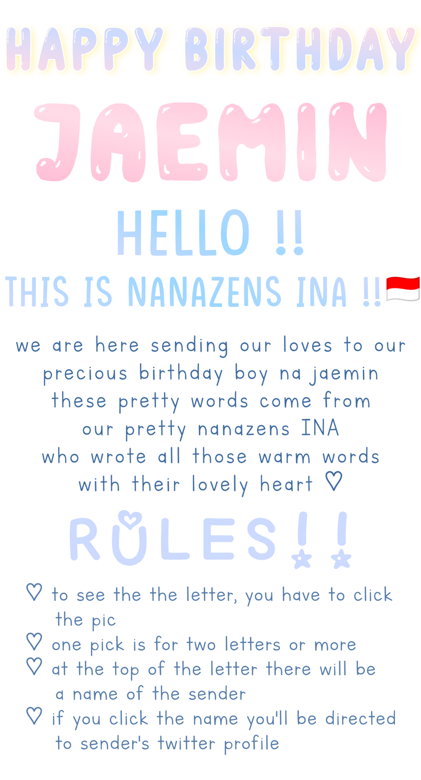 @najaeminher I hope you healthy and always be happy!! cause you said "if nctzen๐ is happy then nana๐ฐis happy too", keeps on shining and be the most shining among the stars in the sky ๐ Nctzens will sending you lots of hearts and happiness! I wish I could swim from my country to you to hug you ๐ I LOVE YOU SO MUCH NANA๐ฐ! words can't describe how much I love you ๐ once again happy birthday๐ฅณ๐